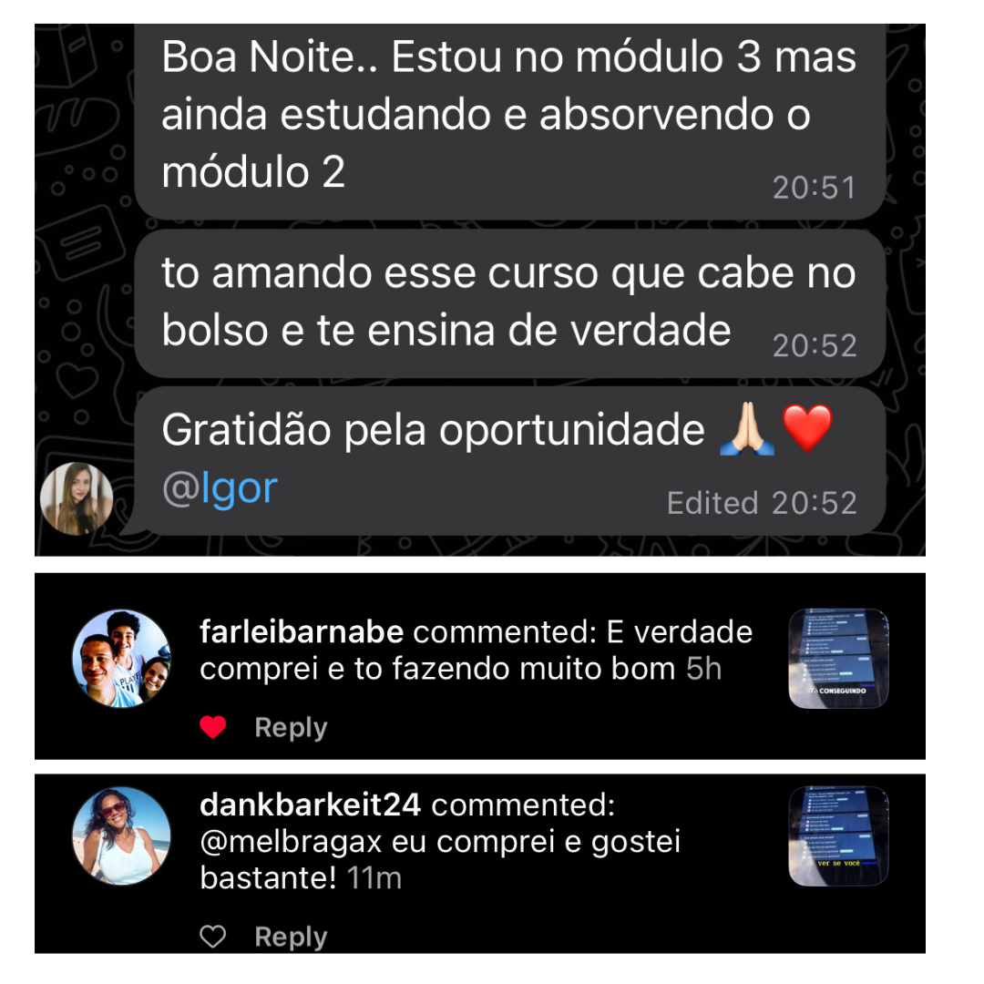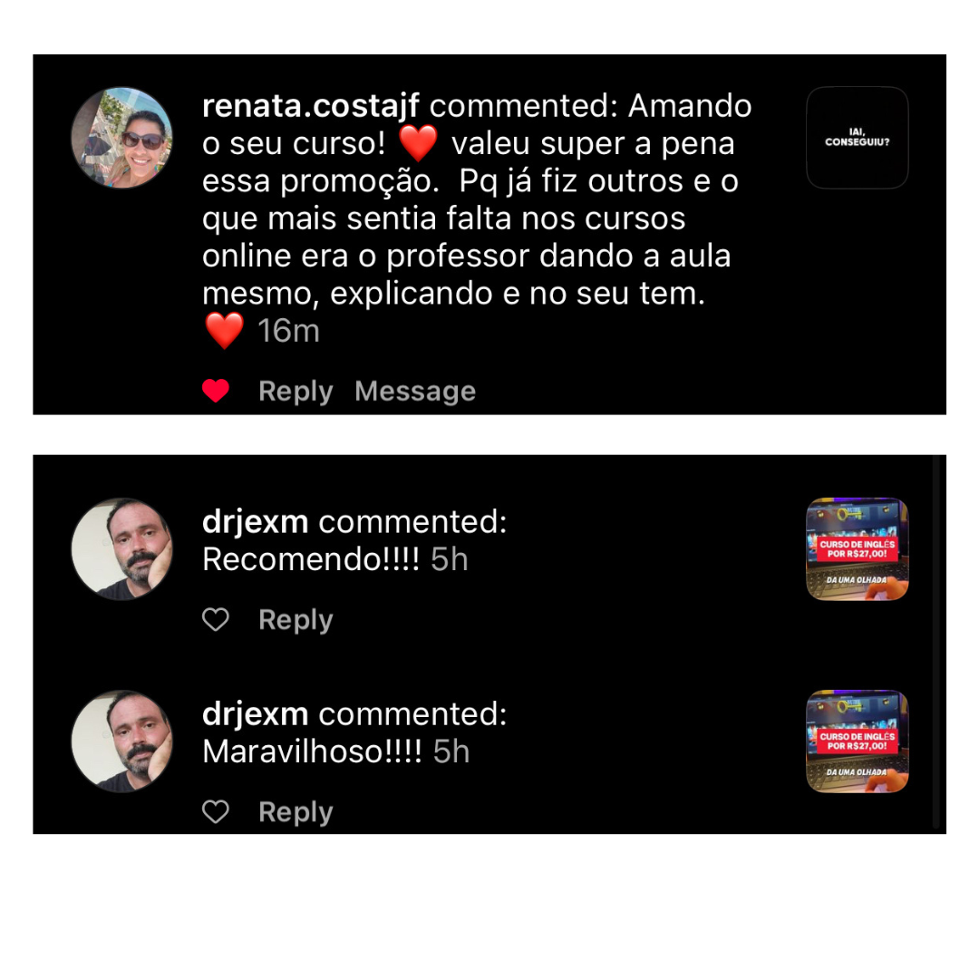 Pra realmente ver você evoluir no seu inglês, conseguir uma vaga de emprego porque as pessoas vão ficar impressionadas com tua fala, ou conseguir fazer aquela viagem que tu sempre quis, e se comunicar sem travar e realmente aproveitar a viagem, ou mesmo estar pronto e preparado pra qualquer oportunidade que aparecer na sua frente!