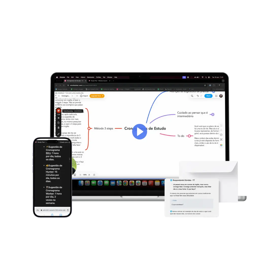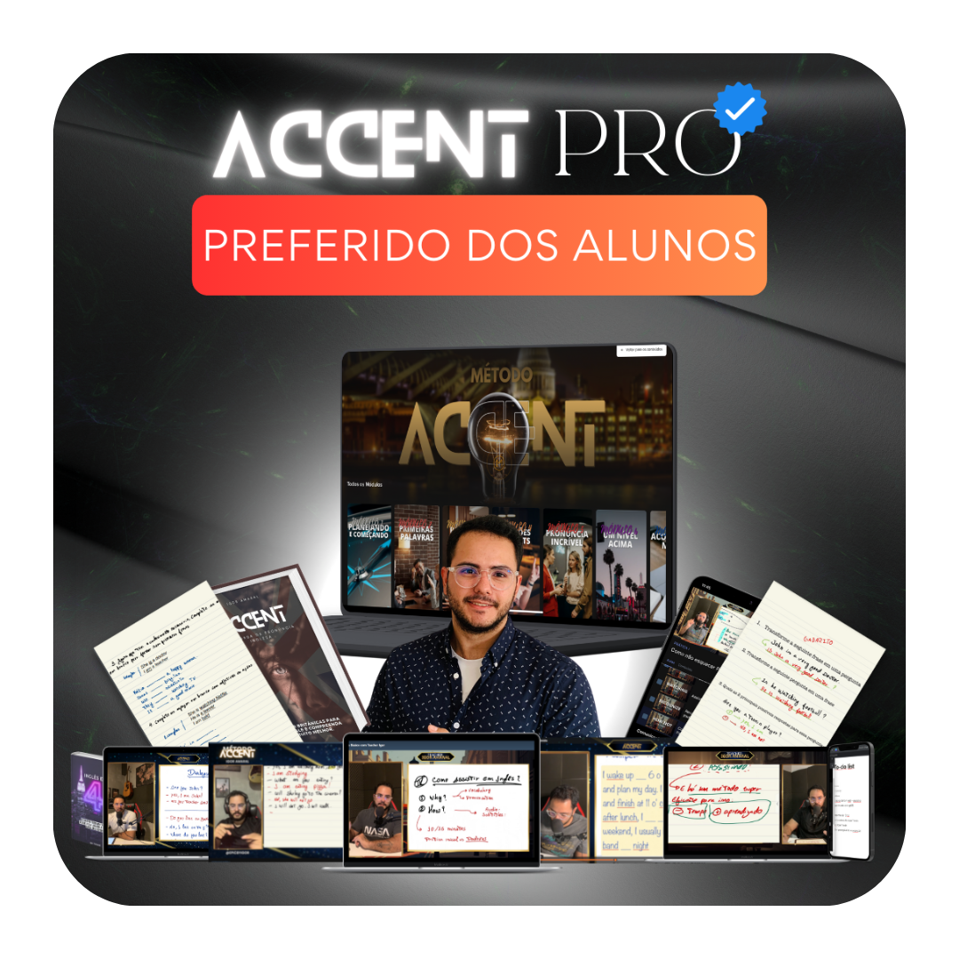 Entrando hoje para o Método Accent, você também vai ter acesso ao AccentCronogram, te guiando em como você pode usar desde 15 minutos por dia a 1 hora para aprender e perceber que está evoluindo aula após aula!