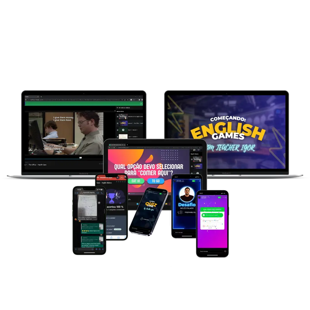 Você vai ter acesso a desafios e jogos criados com a metodologia do teacher Igor, pra você evoluir mais rápido e de forma mais divertida!