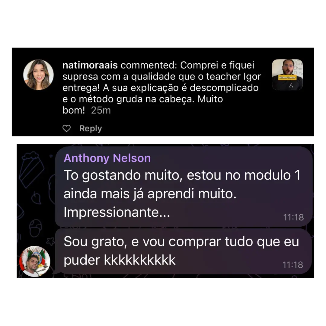 Você vai ter acesso a desafios e jogos criados com a metodologia do teacher Igor, pra você evoluir mais rápido e de forma mais divertida!