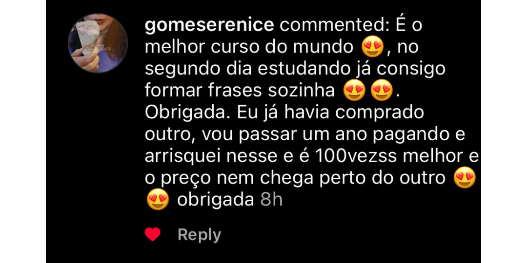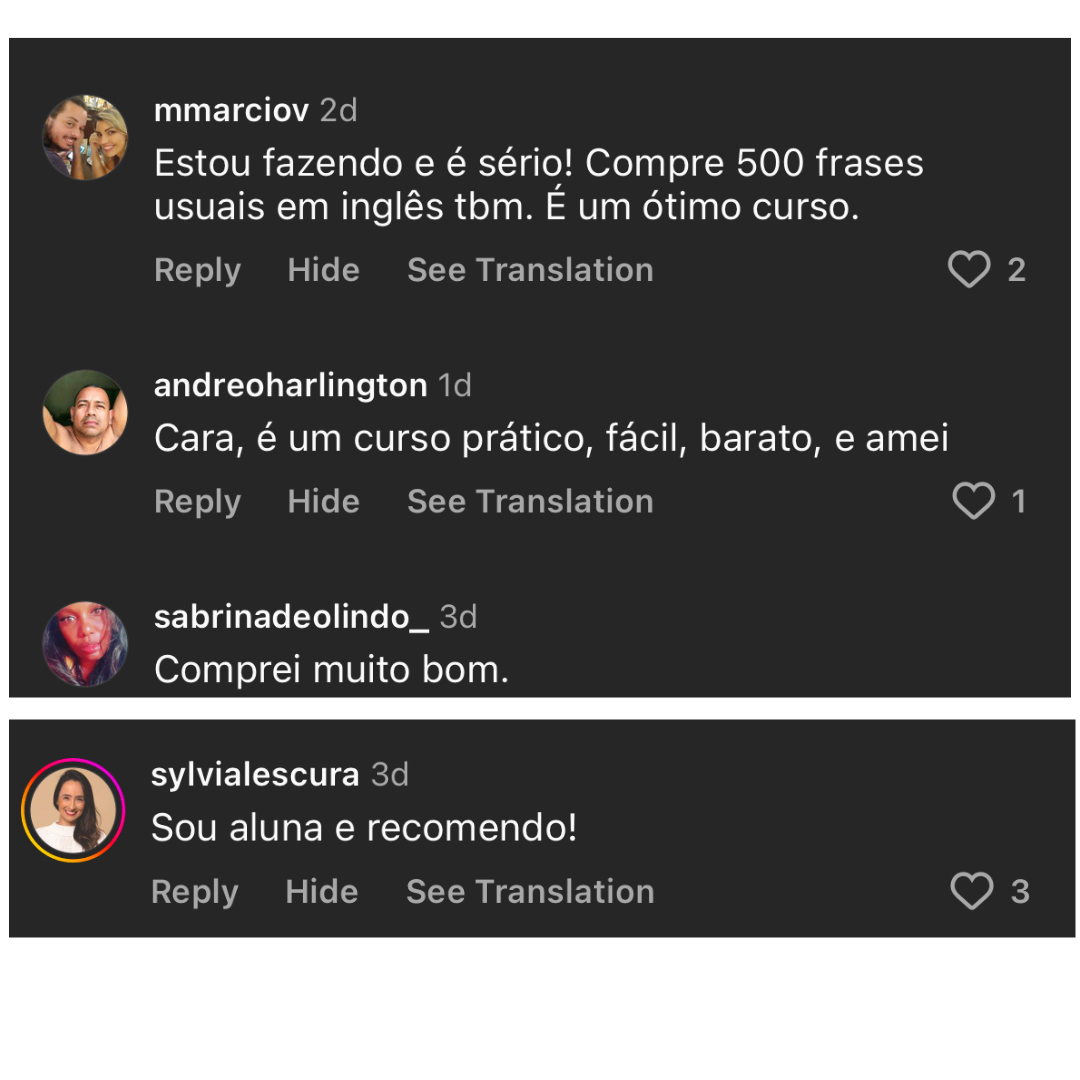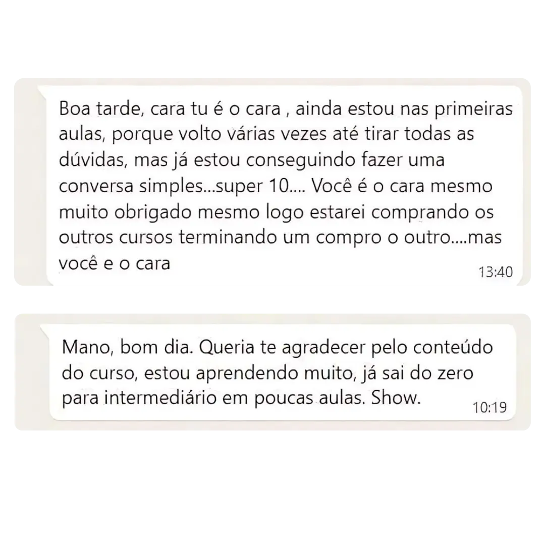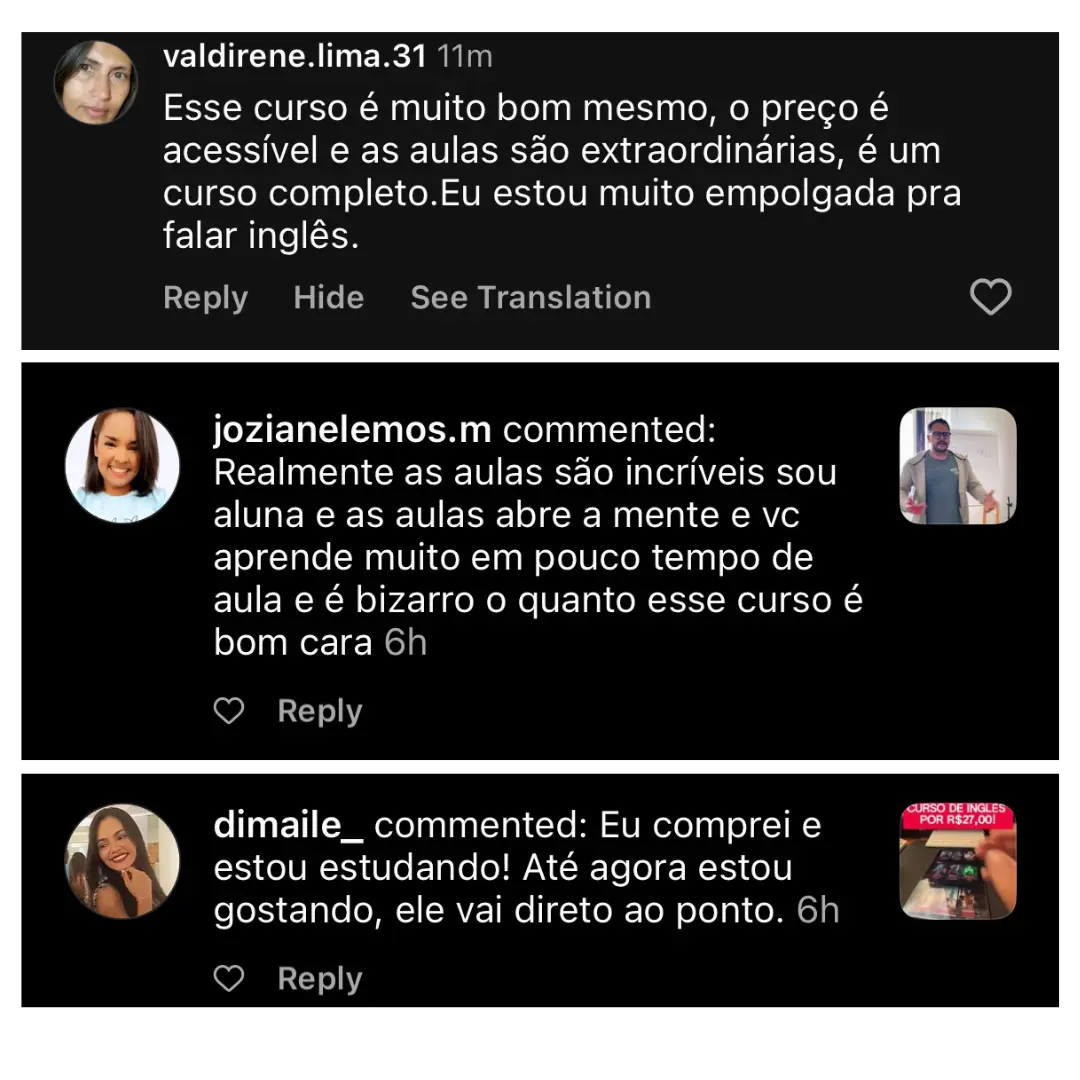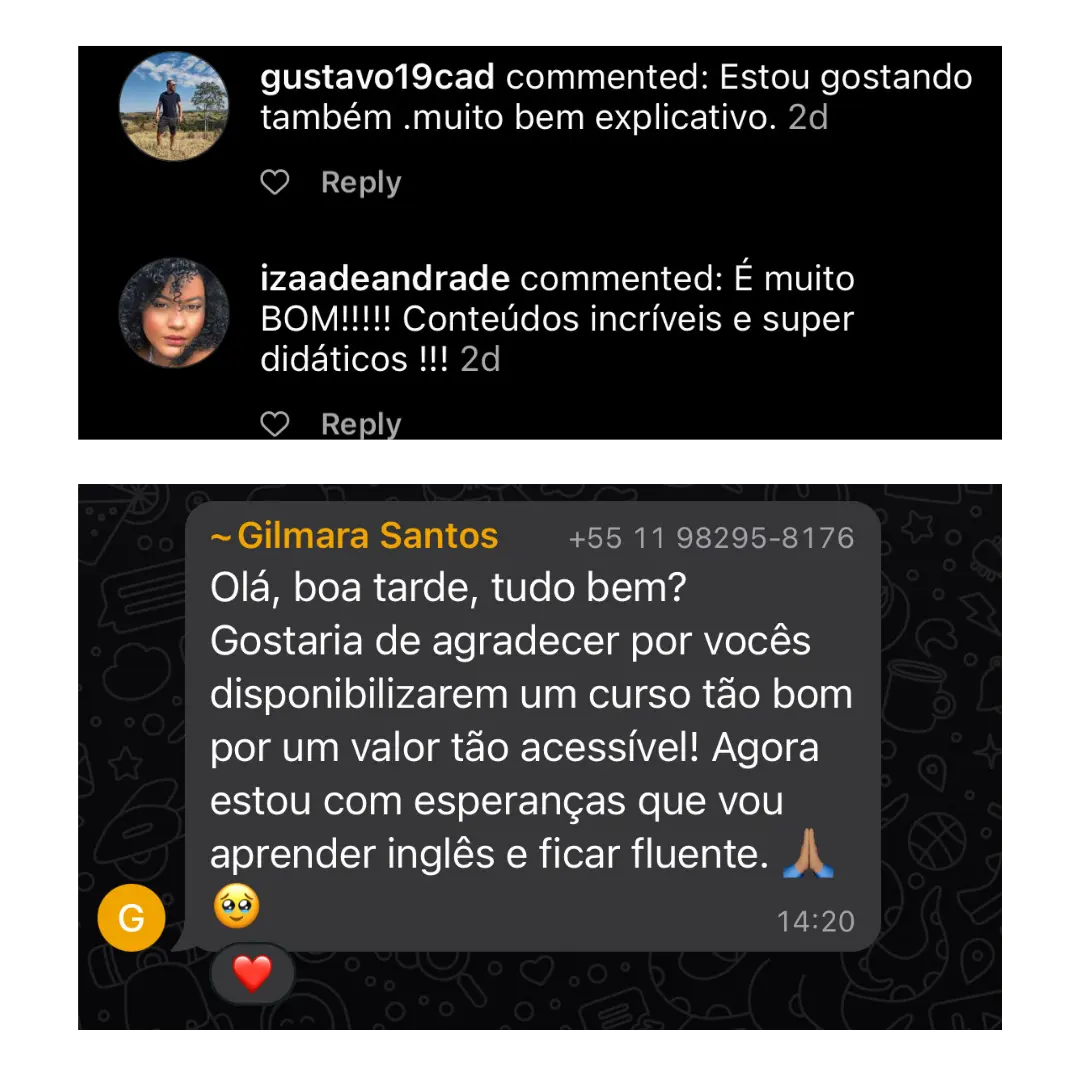 Pra realmente ver você evoluir no seu inglês, conseguir uma vaga de emprego porque as pessoas vão ficar impressionadas com tua fala, ou conseguir fazer aquela viagem que tu sempre quis, e se comunicar sem travar e realmente aproveitar a viagem, ou mesmo estar pronto e preparado pra qualquer oportunidade que aparecer na sua frente!