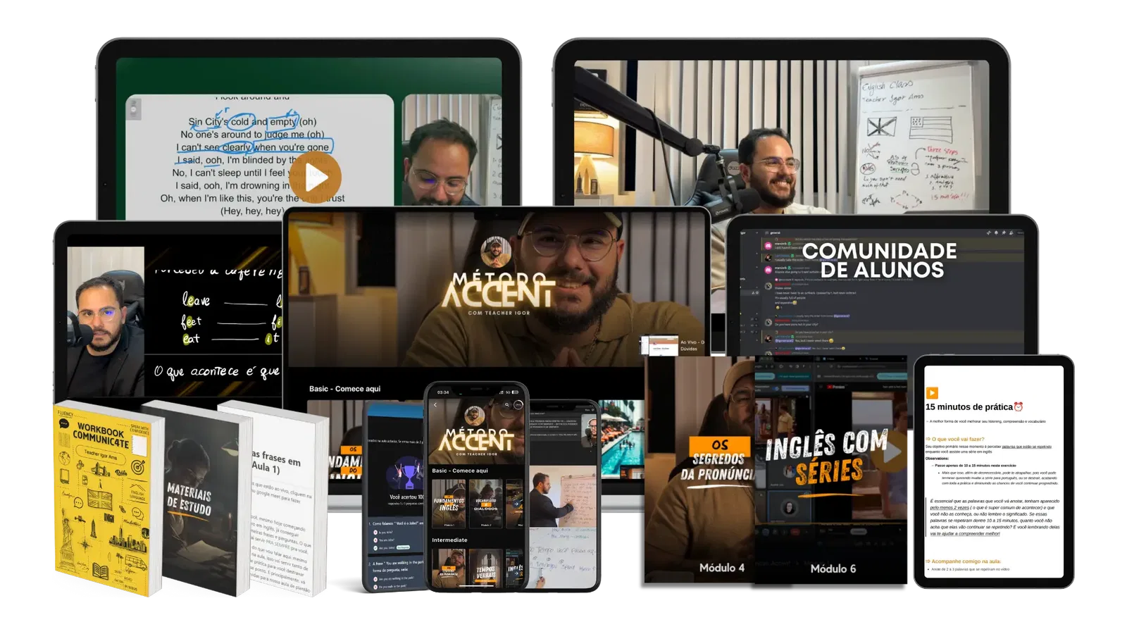 Hello there! Eu sou Igor Amaral, há quase 10 anos, tive acesso a diversas técnicas usadas por experts em pronúncia inglesa da Inglaterra, Bósnia, Estados Unidos e Escócia, que me ajudaram a criar um método que me permitiu evoluir no inglês como nunca imaginei, sem precisar ficar aprendendo toda aquela gramática complicada que os cursos tentam ensinar.